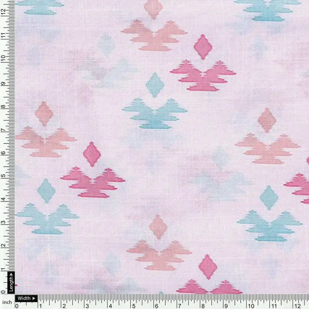 White Linen Printed Unstitched Fabric Set (5 Meter Set)