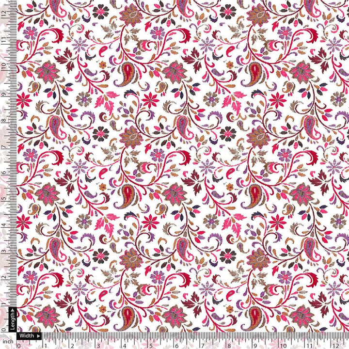 White Paisley Pashmina Printed Fabric