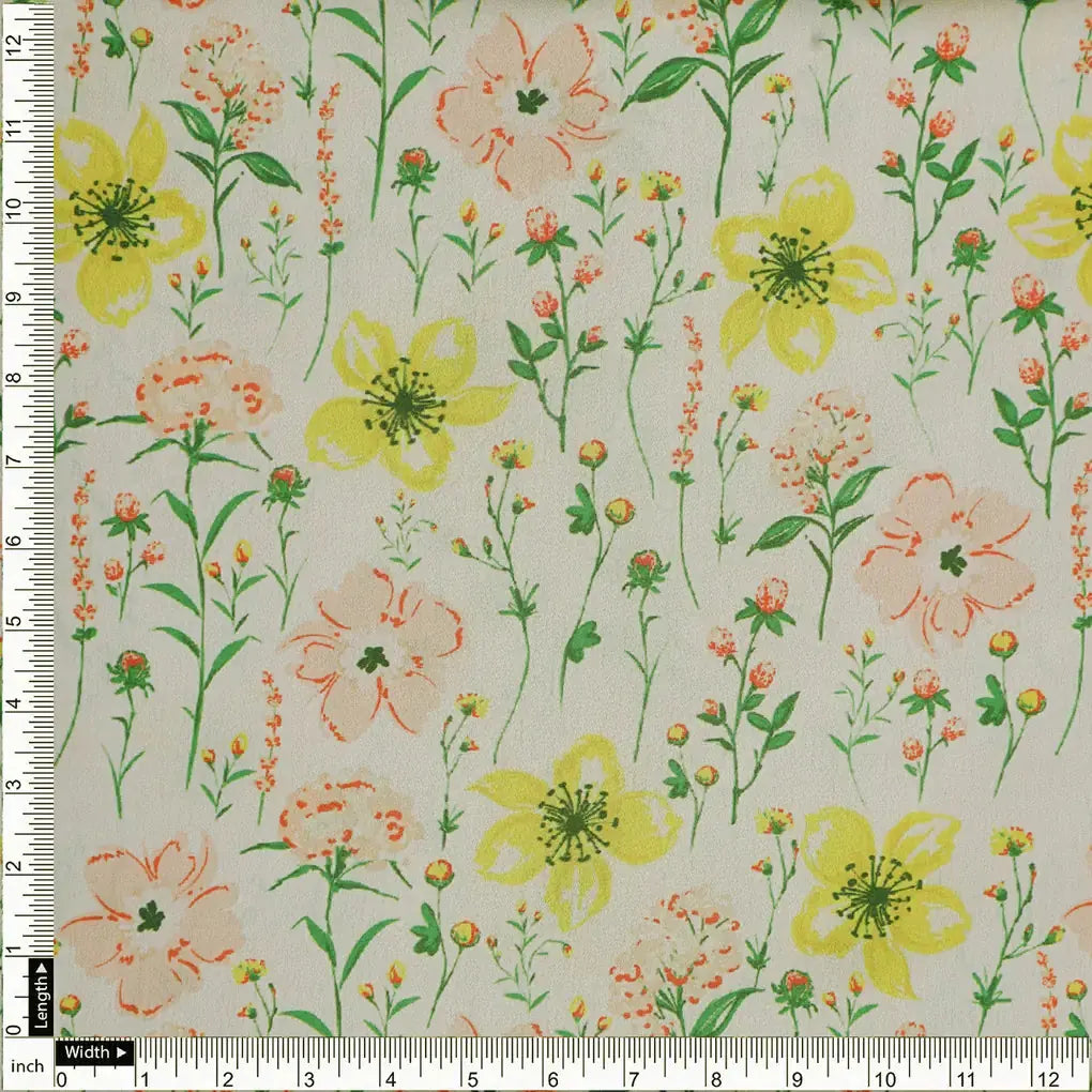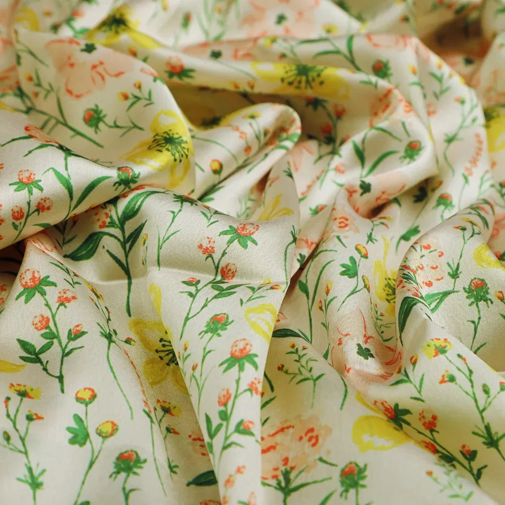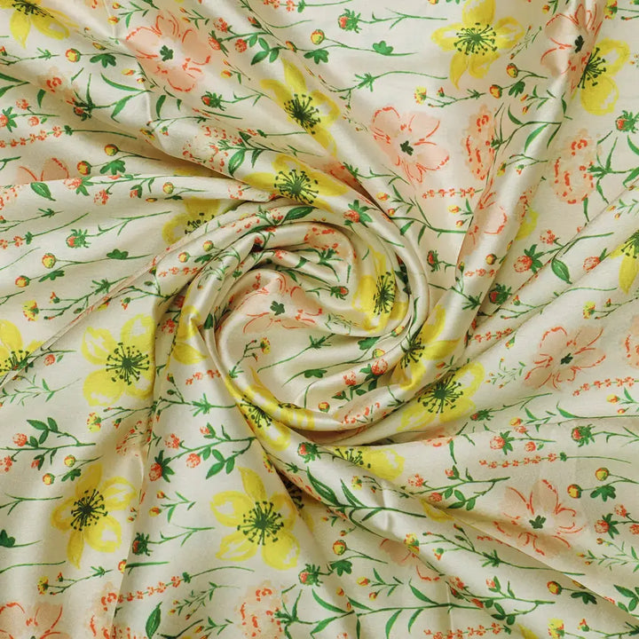 Yellow and Pink Floral Print on Japan Satin Fabric
