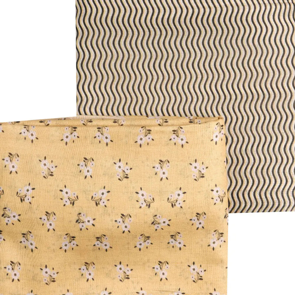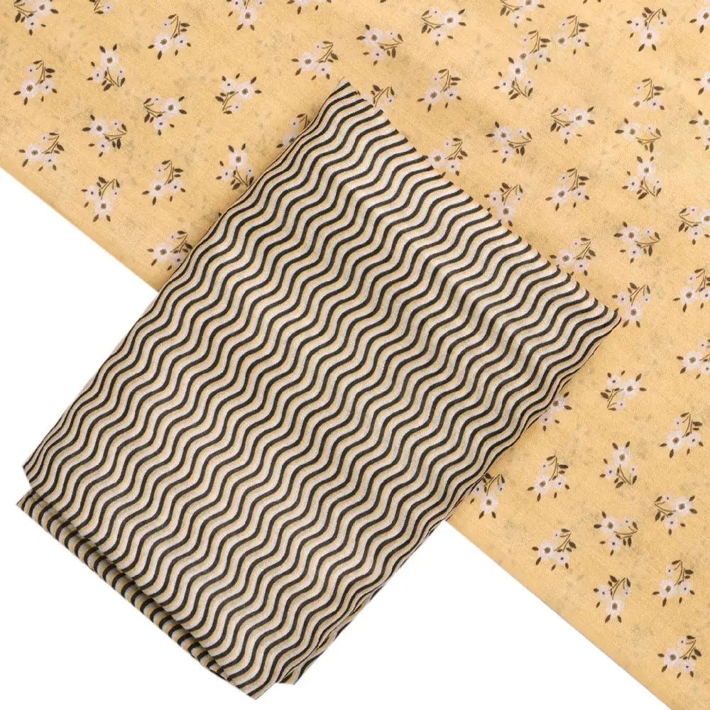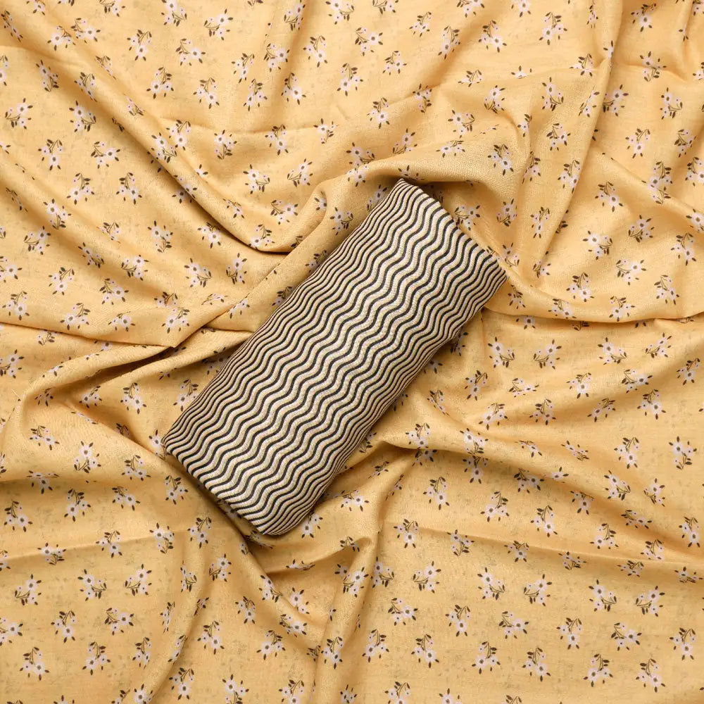 Look your best with this yellow mul cotton printed unstitched fabric set. The eye-catching design features a printed fabric in a classic yellow shade for a timeless style. With both top and bottom fabrics at 2.5 meters each, you'll have plenty of material to work with. Create your own stylish look with this high-quality printed fabric set.