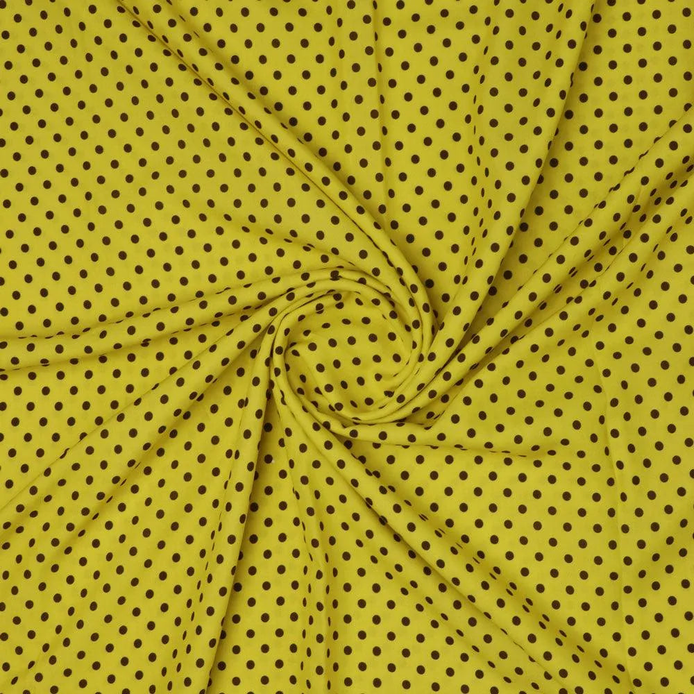 Yellow Polka Dot Digital Printed Fabric - Rayon